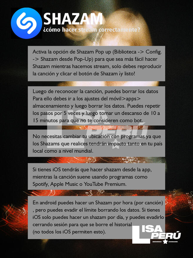 Los residentes estadounidenses, recuerden que después del primer día, debemos concentrarnos en Apple Music, Spotify y Shazam más que en YouTube porque tienen más peso cuando se trata de Billboard.